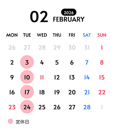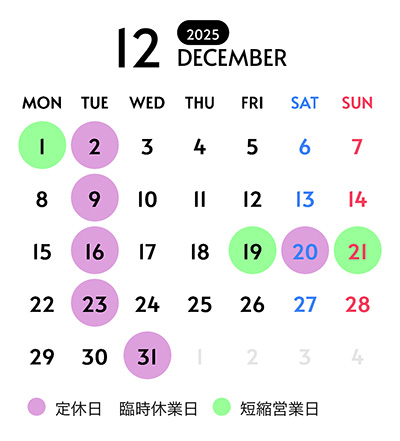 定休日 火曜日 3日・10日・17日・24日