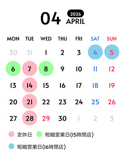 下記期間(4月4日〜4月8日)の営業時間が変更になります。